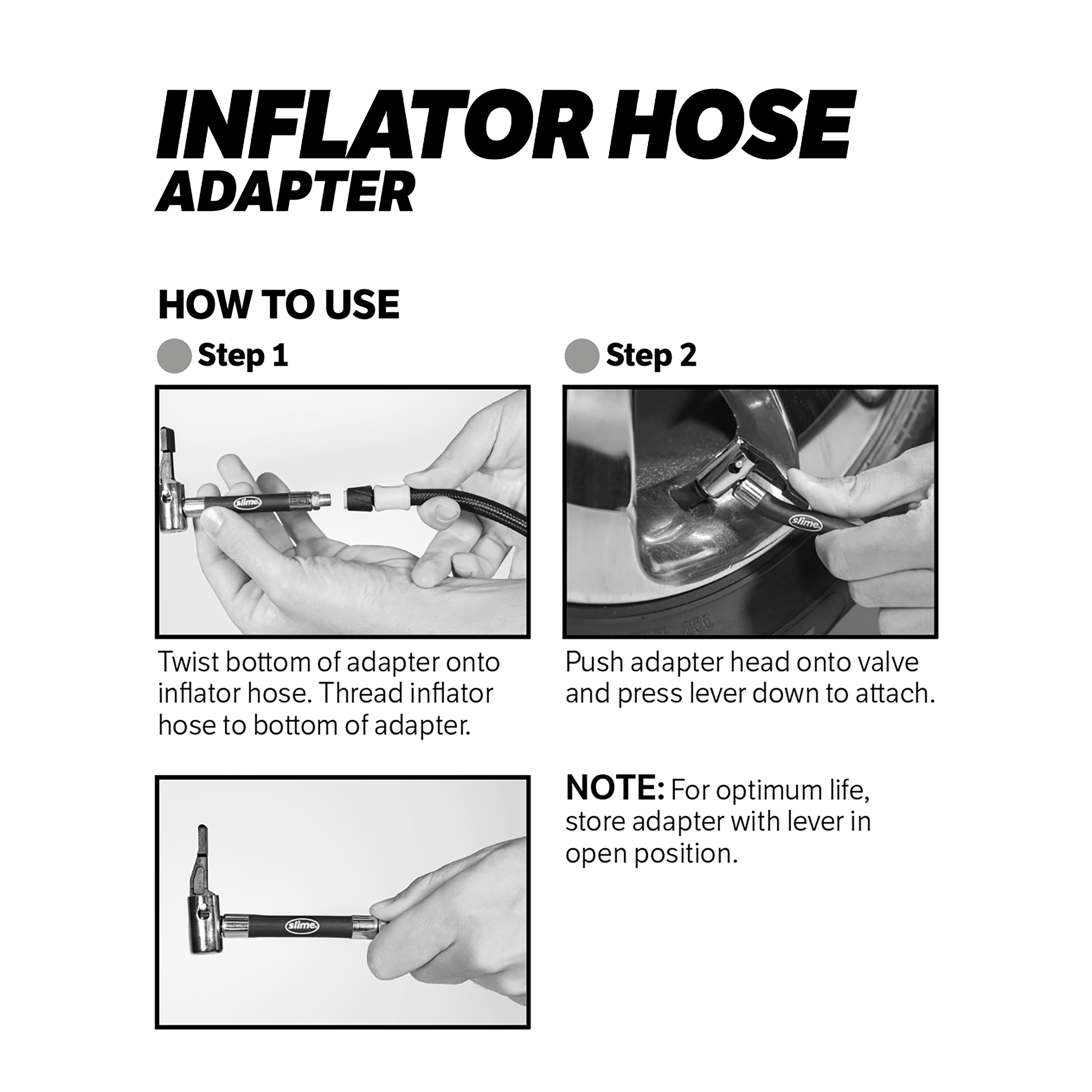 Convert your tire inflator hose's twist-on connection to an easy press Hammerhead connection. Equipped with a snap-on connector, you can now quickly connect to your tire valve stem for a speedier inflation experience.