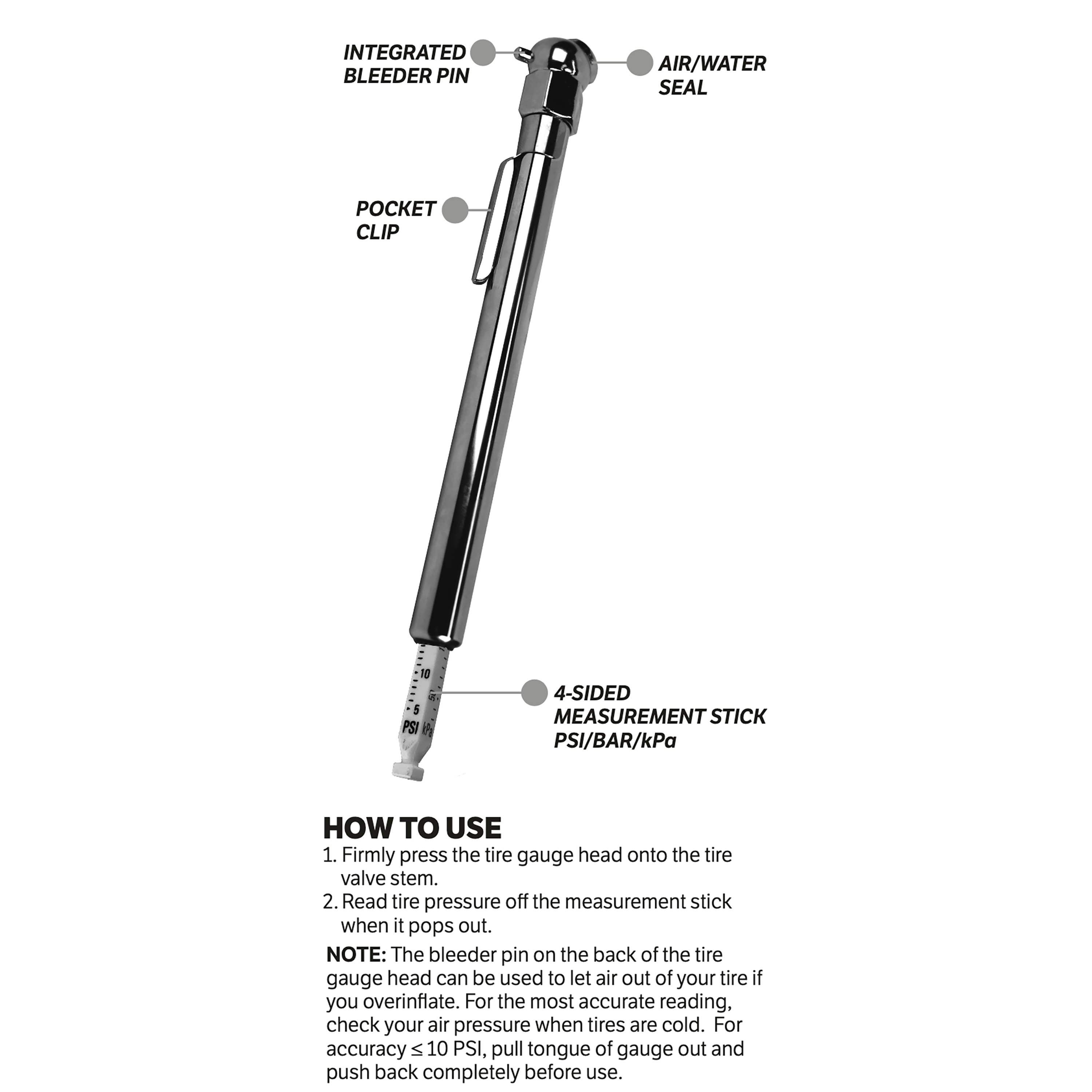 Air & Water Pencil Tire Gauge (5-50 psi)