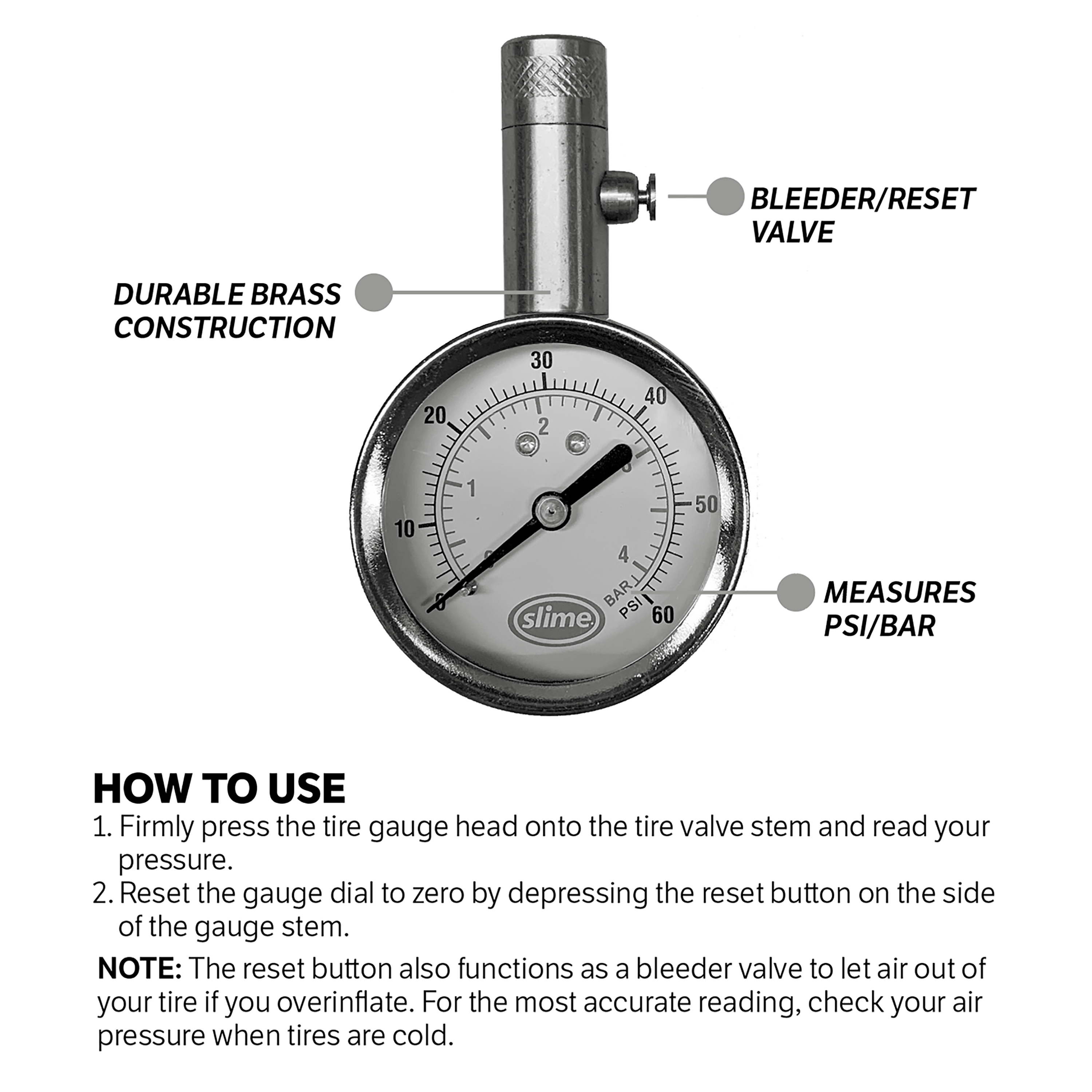 When silver just won't do. This brass dial tire pressure gauge easily pops on your tire valve, and features a bleeder valve for quick pressure adjustments.