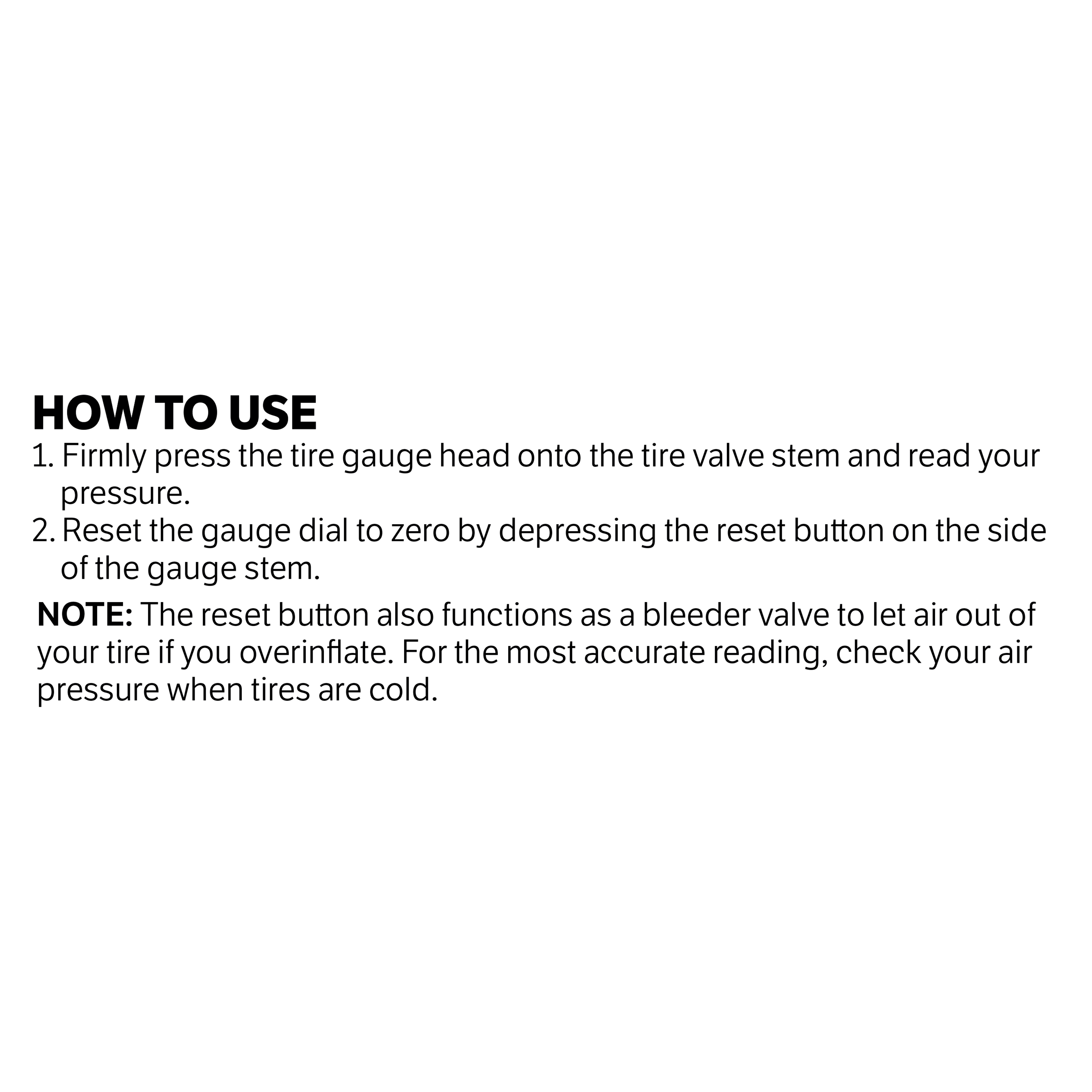 Quickly check your tire pressure and save some money on gas with Slime's Mini Dial Tire Gauge. Measuring 5-60 psi, this compact, silver-toned tire gauge easily fits onto a standard Schrader valve and is equipped with a pressure release valve, so you can adapt your tires to any situation.